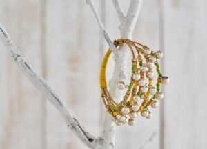 | Material | Gypsy Dhokra bangle with golden metal alloy and multicolor cotton thread. |