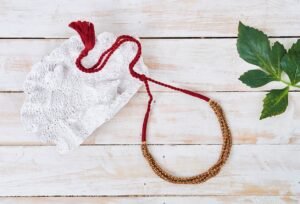 Handcrafted multi layer necklace containing earthy color shades and texture with copper, brass, beads held with an adjustable cotton thread.