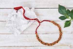 Gypsy Dhokra necklace with Dhokra brass beads and red & black cotton thread