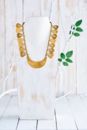 | Material | A light and elegant necklace made of brass beads and Dokhra motifs. |