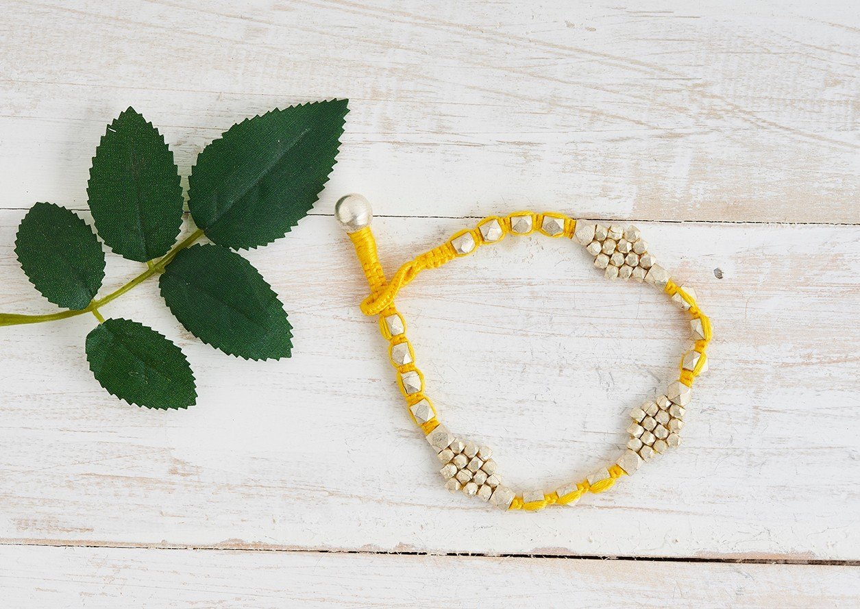 Gypsy Dhokra anklet with silver metal alloy and yellow cotton thread.